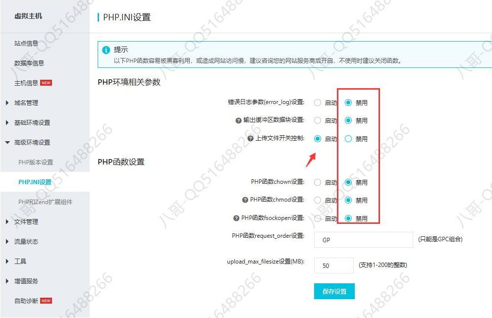 • 如果需要发送邮件功能,fsockopen也设置为启动