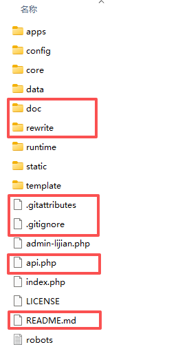 • 1-2、删除程序目录里的多余的文件和文件夹